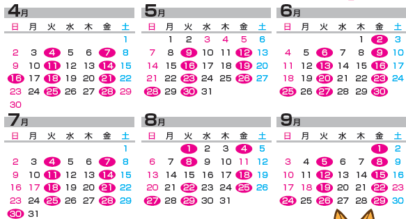 | 日曜日(月1回) | 10:00~10:50 11:00~11:50 |